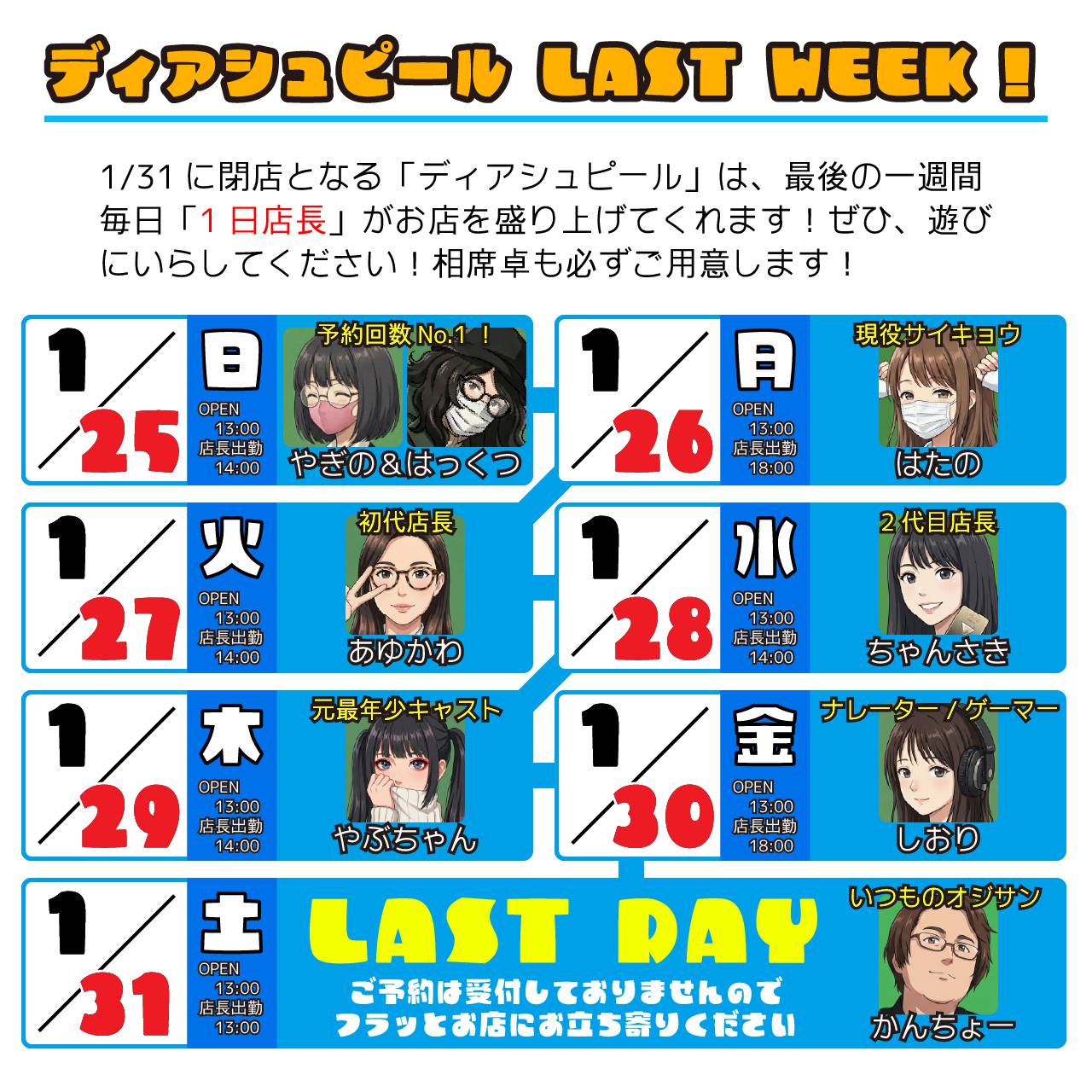 1/31(土)をもちまして