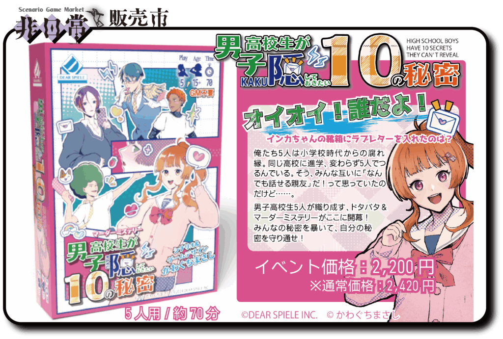 ・あたらしいタブー・あひるのソワレ・イカ釣り漁船 おさしみ・える・大分から来ました。・goonie cafe・THE NAZO STORE・知転悩(してんのう)・週末倶楽部・体験推理小説・探偵はなざわ・TOXY GAMES・newmerous